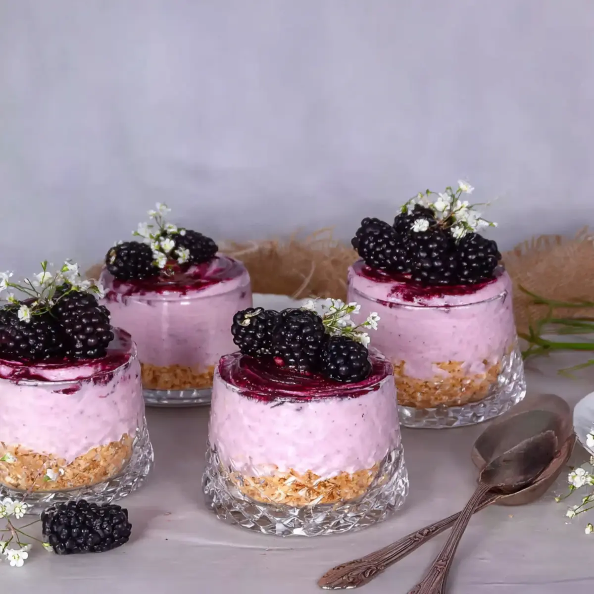 So bringst du Brombeer Cheesecake im Glas in wenigen Minuten zusammen