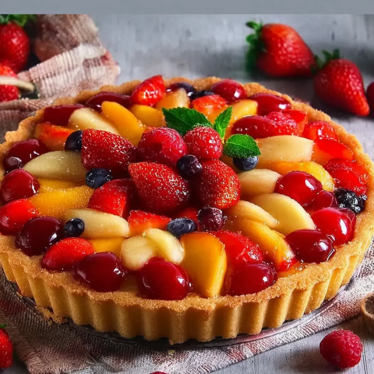 - Der Obstboden ist nun bereit zum Belegen mit Ihren Lieblingsfrüchten und Toppings.